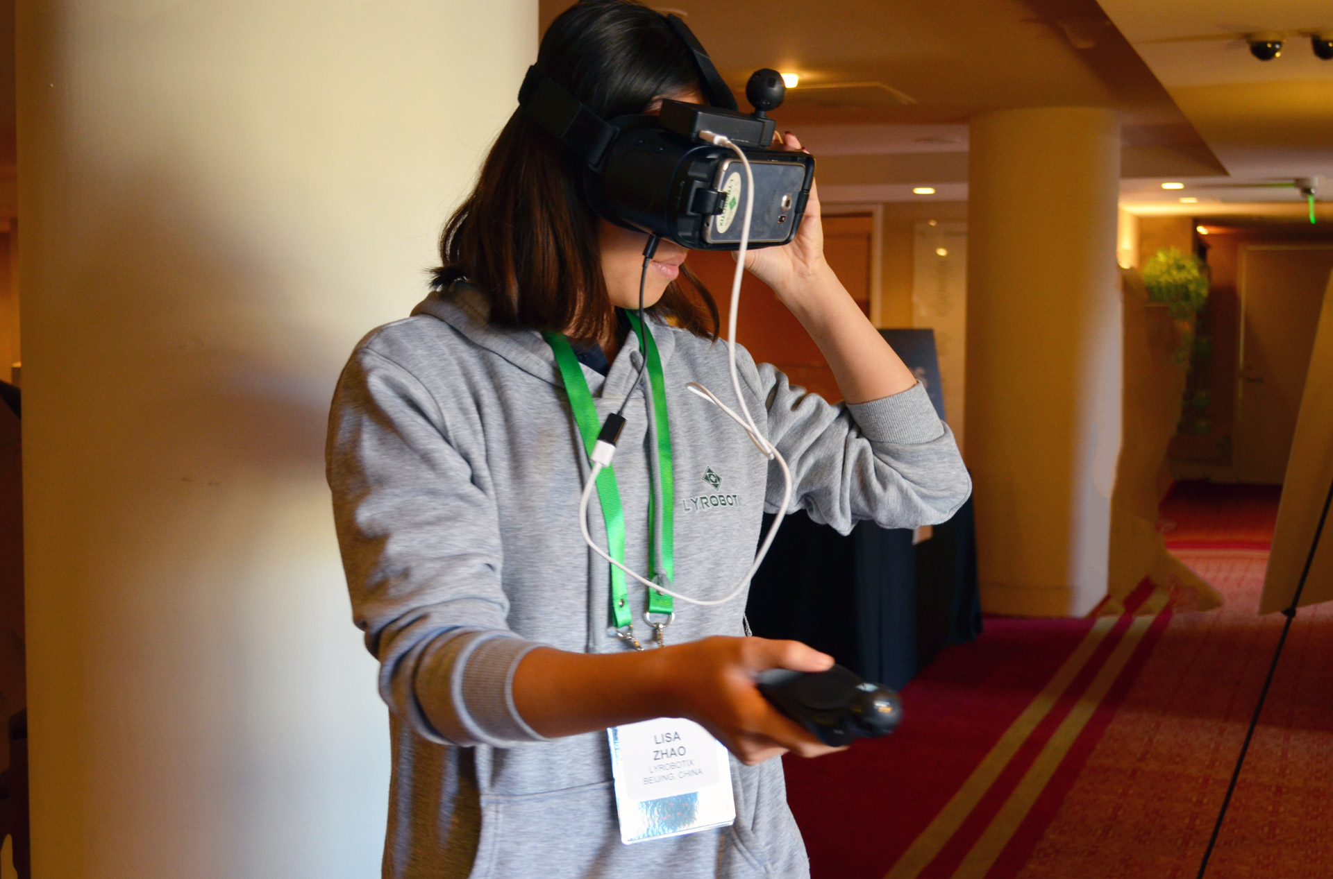 Lisa Zhao, COO of Lyrobotix, told me that the prototype system was not yet fusing IMU data, so the positional tracking I was seeing in the demo was relying entirely on raw data from the emitter and tracking sphere, which only updates at 60Hz. For big headsets out there like the Vive and Rift, the onboard IMU is sampled at very high rates (in the hundreds of Hz) and used to determine the movement of the headset (with the addition of prediction), and then that data is fused with a slower outside-in tracking system to make absolute positioning corrections to prevent drift (much like using GPS coordinates to repeatedly correct small segments of dead reckoning). If Lyrobotix is able to achieve the same sensor fusion with Gear VR’s IMU (and they say they will be able to), it could mean a big improvement over the unfused performance I saw on the prototype (and may also be an answer to the quantized positional behavior I noticed).