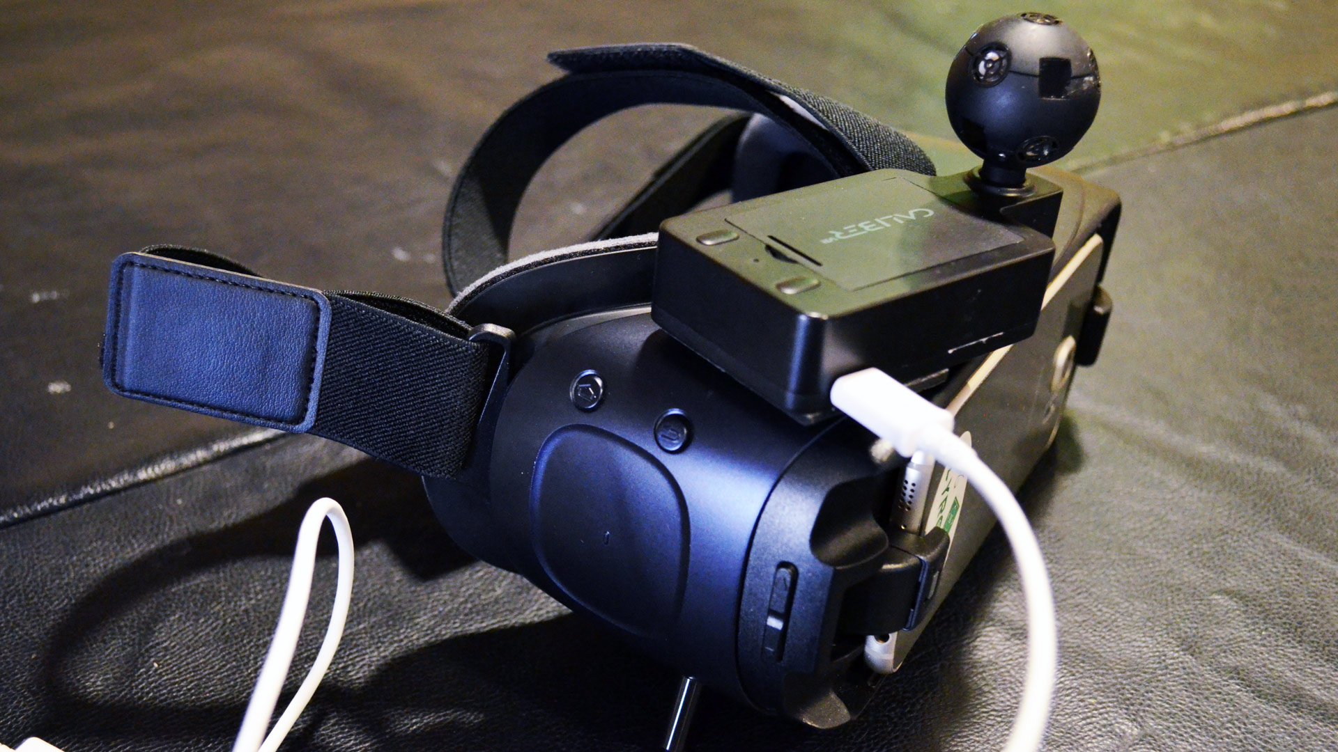 The lasers and ultrasonic waves are picked up by the small tracking sphere which is covered in receivers. In the prototype demo I saw this week at VRS 2016, the sphere was plugged directly into a Gear VR headset for both power and data relay.