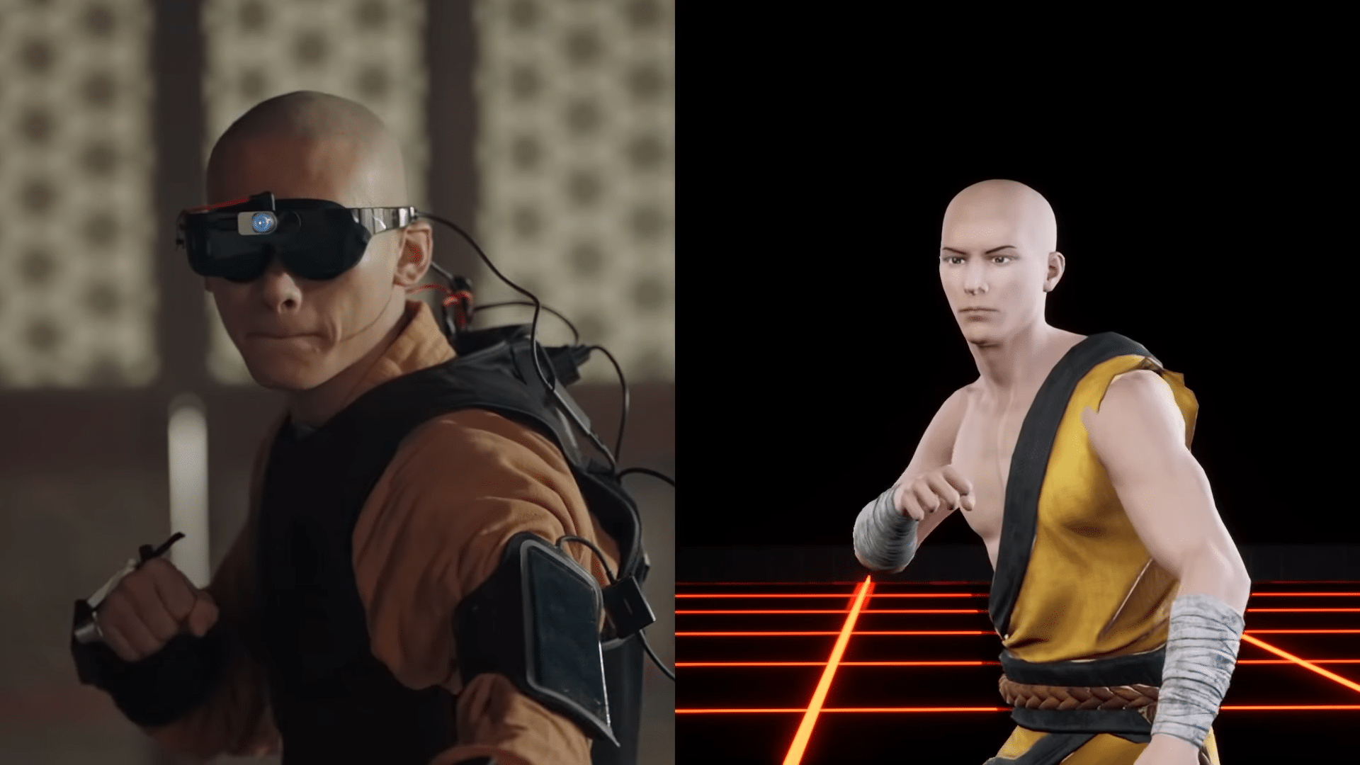 If only the ensuing match looked halfway believable. Shaky cam action, cut to quick shots of an army of engineers inexplicably typing away at… something as we watch an apparently unrehearsed, spectacular display of 1-1 tracking in a fighting game. Our martial artist-hero is apparently wearing haptics so powerful they can stop his arm when blocking an incoming punch or even stumble back when he gets kicked in the face. There’s even a moment where he leaps into the air and chokeslams his opponent. Not to mention the software is so advanced it knows how to react to every punch and kick he throws his enemy’s way.