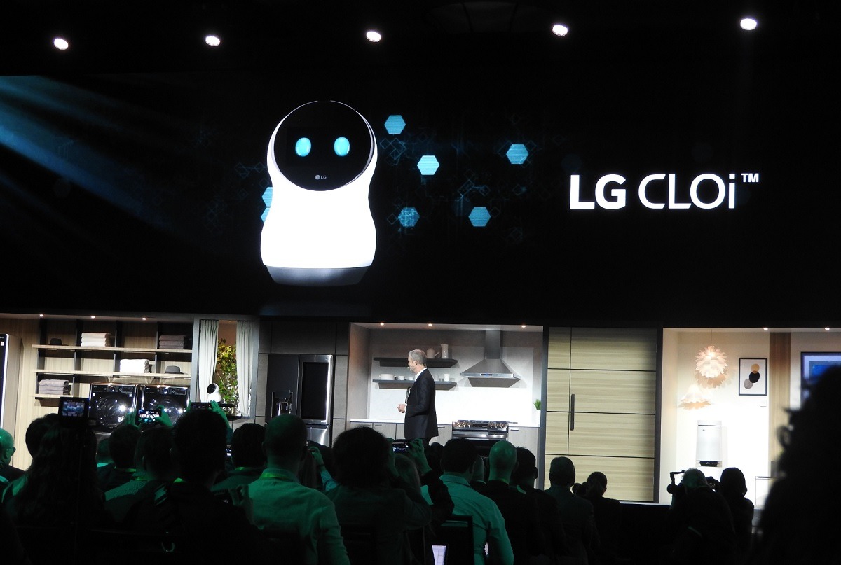 The need for a quiet environment was crystal clear at the LG press conference. David VanderWaal, vice president of marketing at LG, had to sweat it out on stage because the home assistant robot Cloi was uncooperative. At first, she said, “Hello Dave. I hope you are well. What can I do for you today?” She told him the daily schedule and noted that she had set the washer for his workout gear.