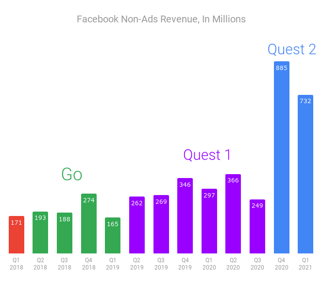 Facebook’s Q1 2021 non-ads revenue was 2.5x that of Q1 2020 while continuing a trend that suggests Oculus Quest 2 is driving growth in the category after its holiday 2020 debut.